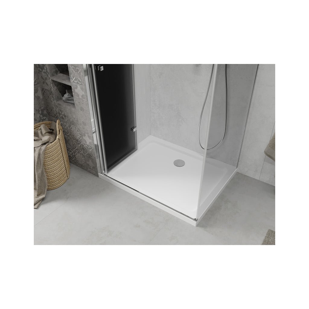 Mexen Lima, sprchový kút so skladacími dverami 90 (dvere) x 80 (stena) cm, 6mm šedé sklo, chrómový profil + slim sprchová vanička biela + chrómový sifón, 856-090-080-01-40-4010