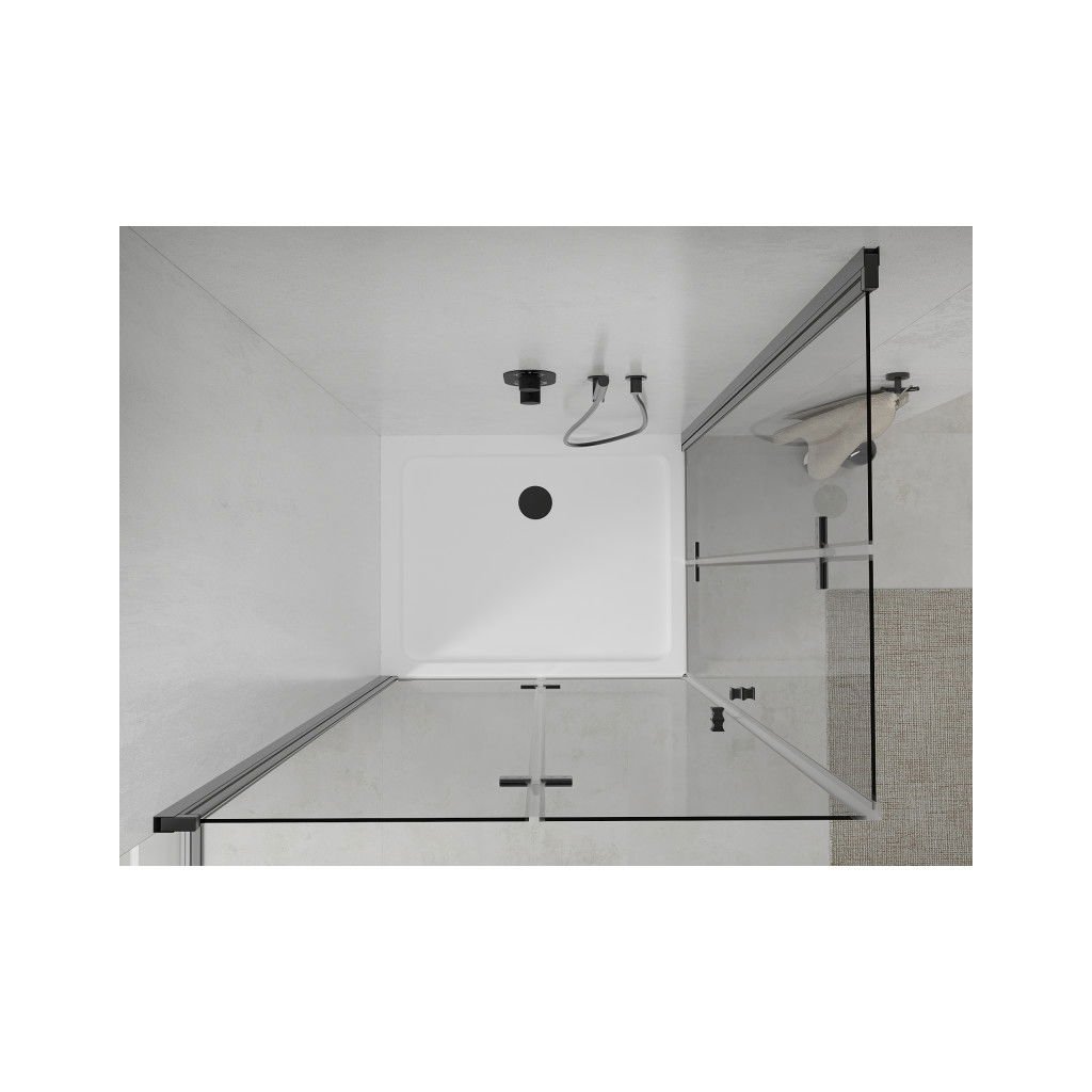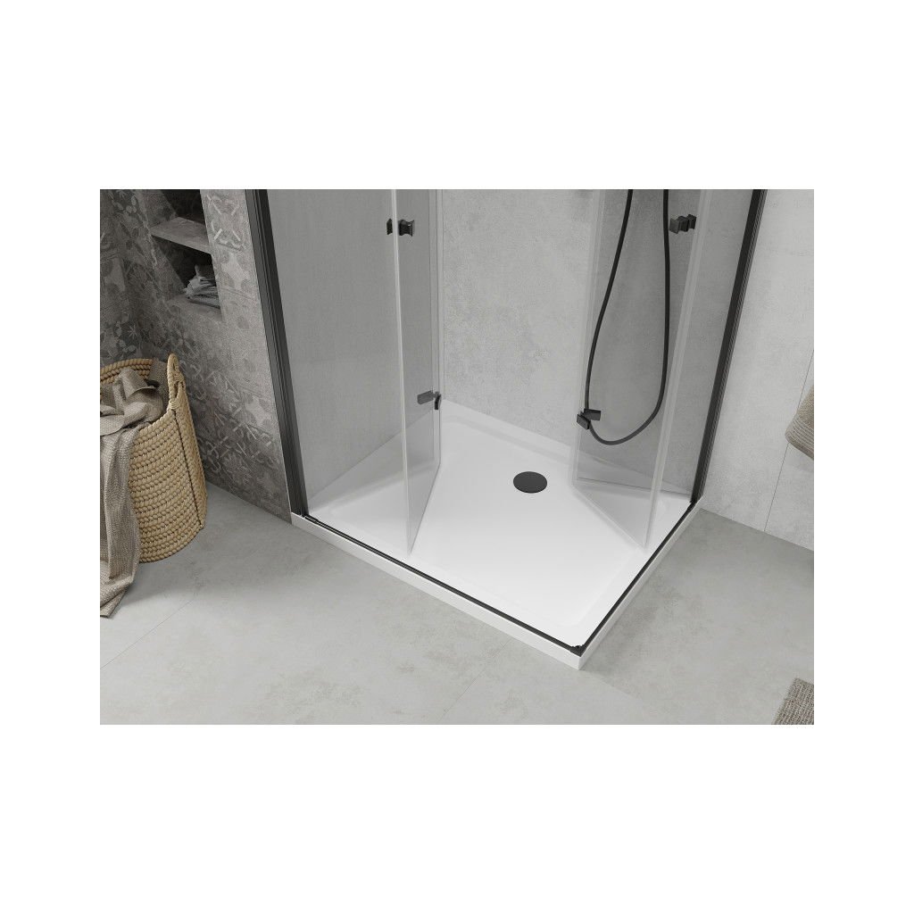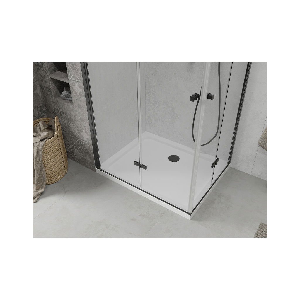 Mexen Lima Duo, sprchovací kút s 2-krídlovými skladacími dverami 90 (dvere) x 80 (dvere) cm, 6mm číre sklo, čierny profil + slim sprchová vanička 5cm biela s čiernym sifónom, 856-090-080-70-02-4010B