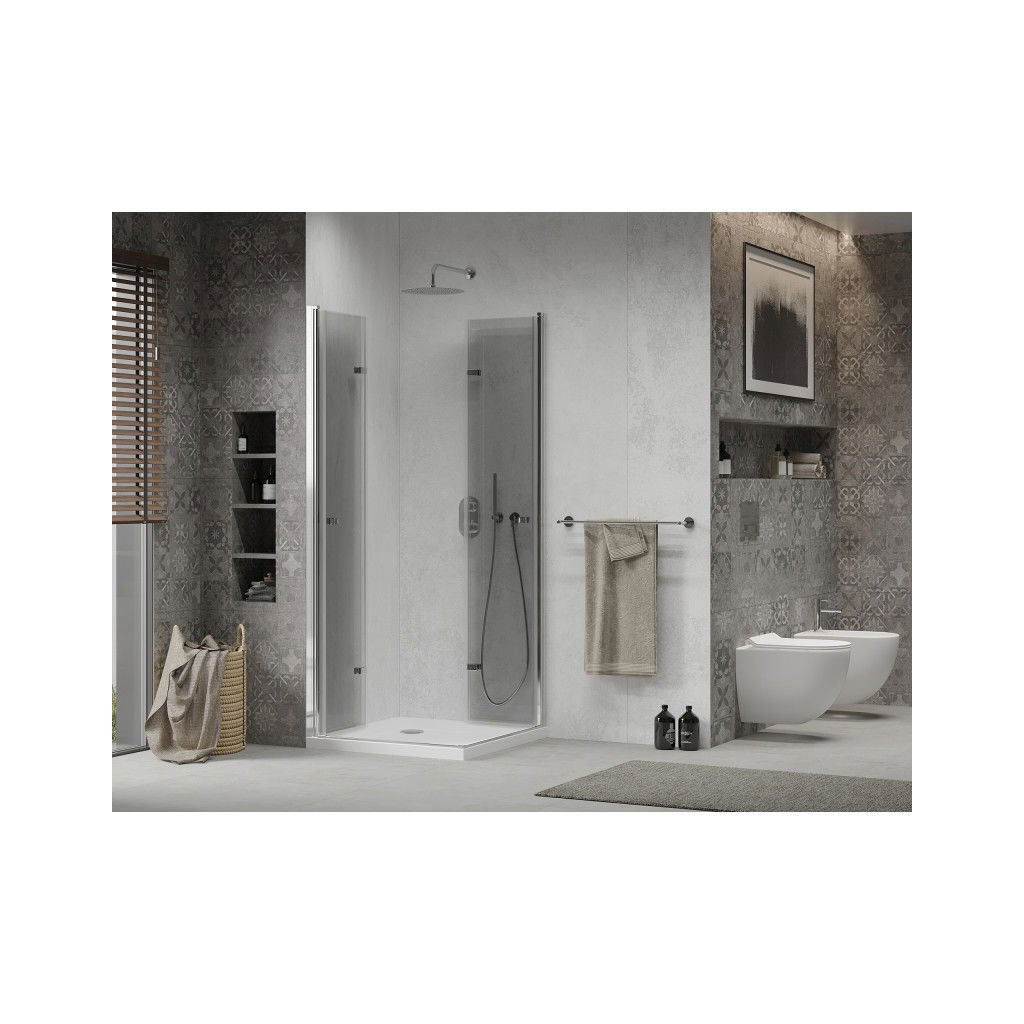 Mexen Lima Duo, sprchový kút 90 (dvere) x 90 (dvere) cm, 6mm číre sklo, chrómový profil + SLIM sprchová vanička biela 5cm, 856-090-090-01-02-4010