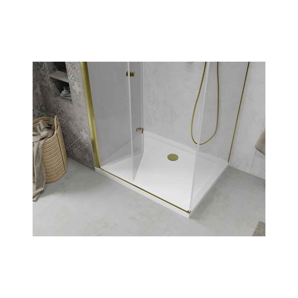 Skladacia sprchová kabína Mexen Lima 90 x 80 cm, priehľadná, zlatá + plochá sprchová vanička-856-090-080-50-00-4010