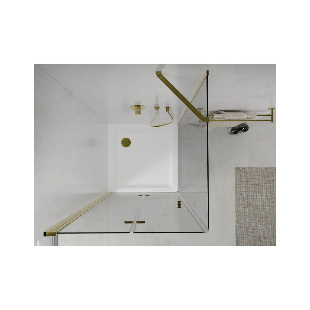 Mexen Lima sprchovací kút so skladacími dverami 100 x 100 cm, 6mm číre sklo, zlatý profil + sprchová vanička Slim, 856-100-100-50-00-4010