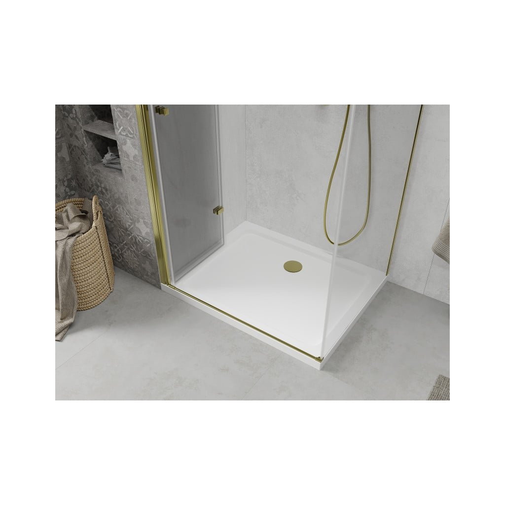 Mexen Lima sprchovací kút so skladacími dverami 70 x 100 cm, číre sklo-zlaty profil + sprchová vanička, 856-070-100-50-00-4010