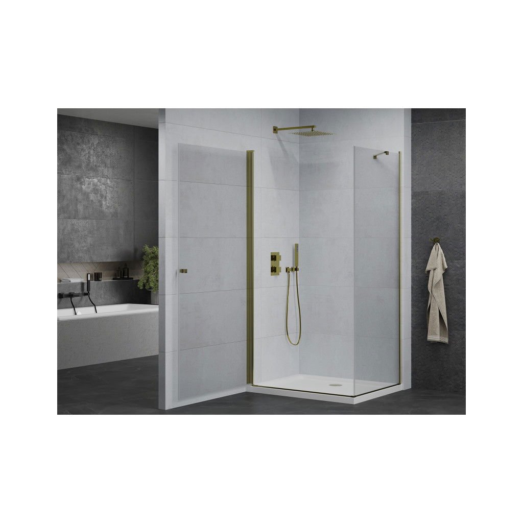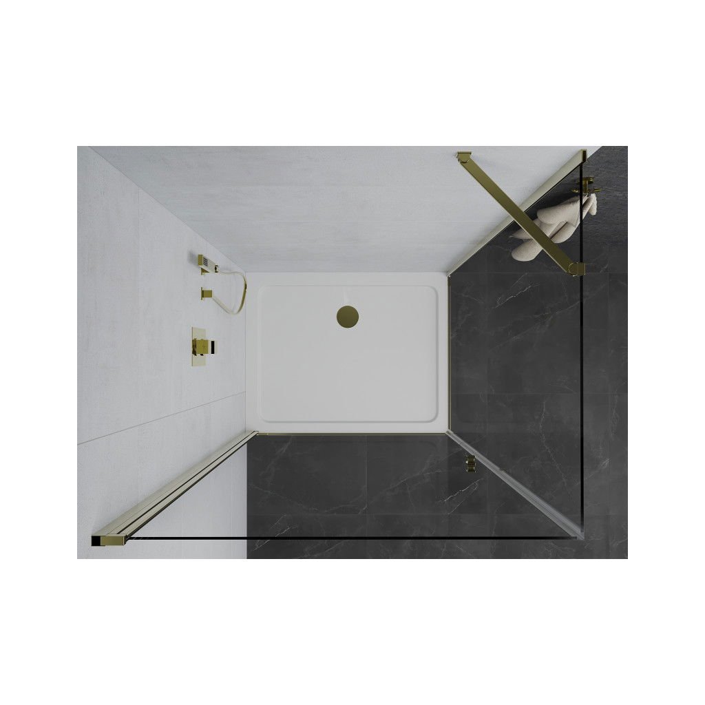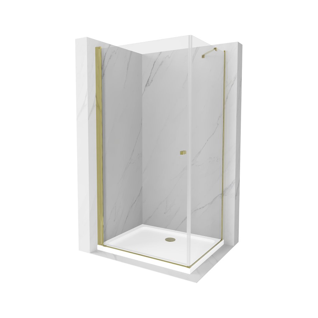Mexen Lima sprchovací kút so skladacími dverami 90 x 100 cm, 6mm číre sklo, zlatý profil + sprchová vanička, 852-090-100-50-00-4010