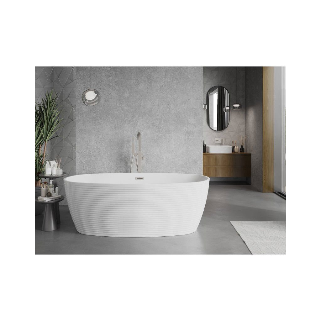 Mexen Lira, voľne stojaca vaňa, vzor, 170 × 80 cm, biela lesklá, oceľový prepad, 52831708000-97