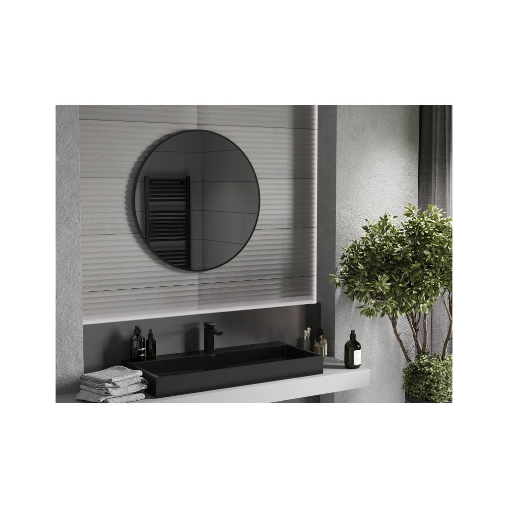Mexen Loft, okrúhle kúpeľňové zrkadlo 80 cm, farba rámu čierna matná, 9850-080-080-000-70