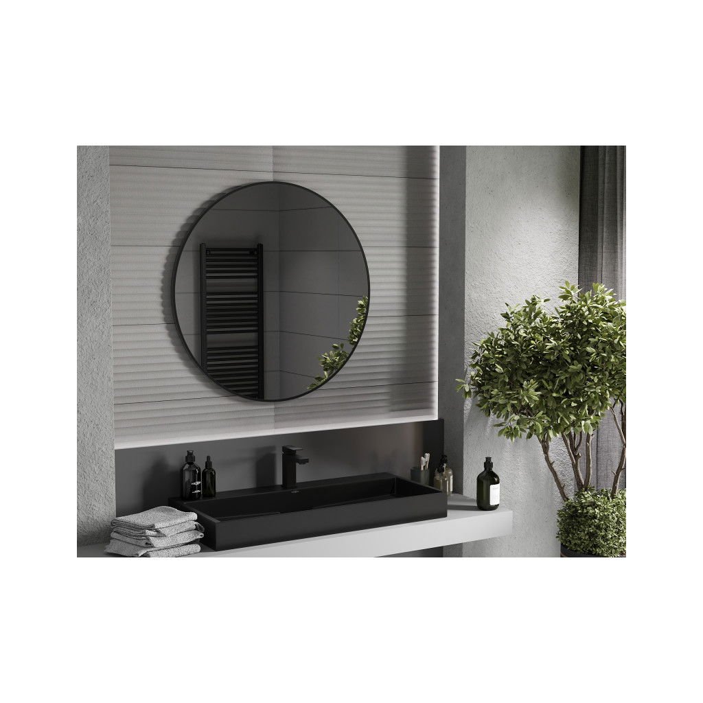 Mexen Loft, okrúhle kúpeľňové zrkadlo 90 cm, farba rámu čierna matná, 9850-090-090-000-70