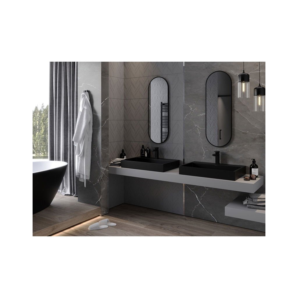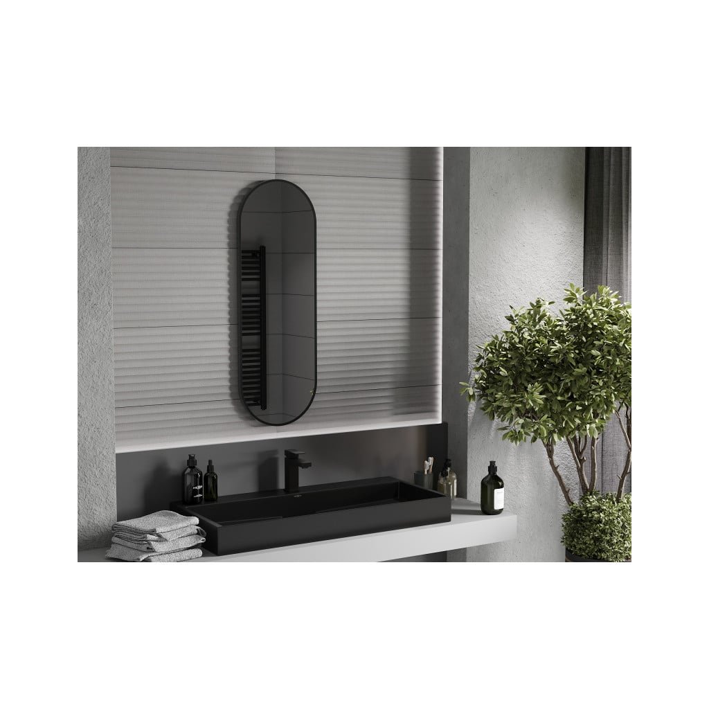 Mexen Loft, oválne kúpeľňové zrkadlo 100 x 35 cm, farba rámu čierna matná, 9851-100-035-000-70