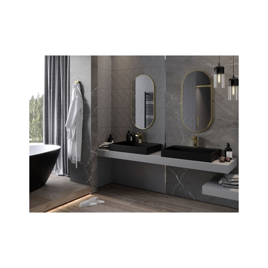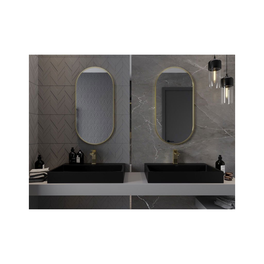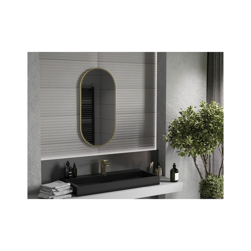 Mexen Loft, oválne kúpeľňové zrkadlo 90 x 45 cm, farba rámu zlatá lesklá, 9851-090-045-000-50