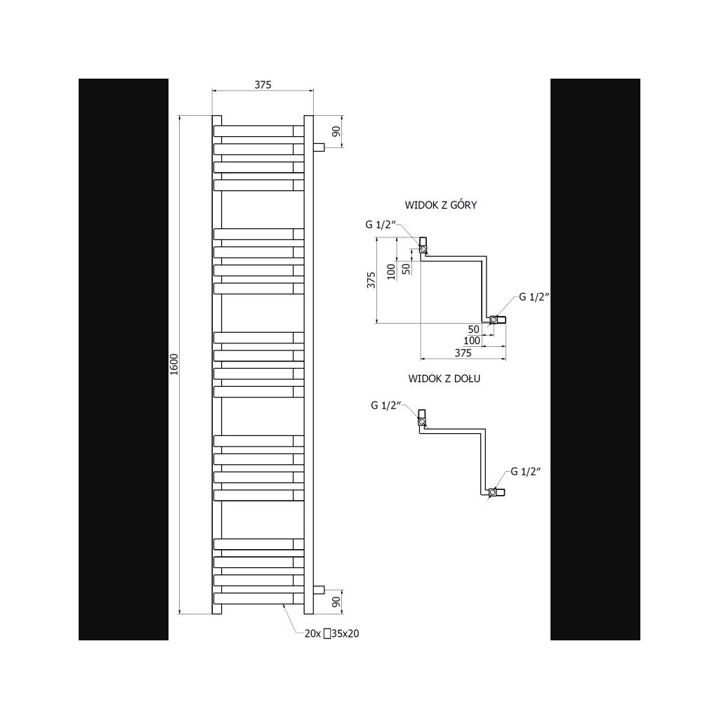 Mexen Loop, kúpeľňový radiátor 1600 x 375 mm, 837 W, grafitová, W129-1600-350-00-66