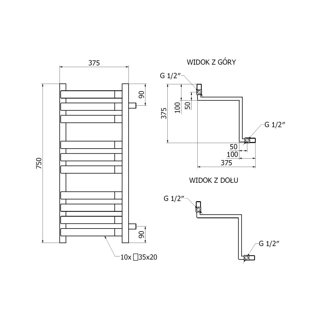 Mexen Loop, kúpeľňový radiátor 750 x 375 mm, 413 W, antracitová, W129-0750-350-00-66