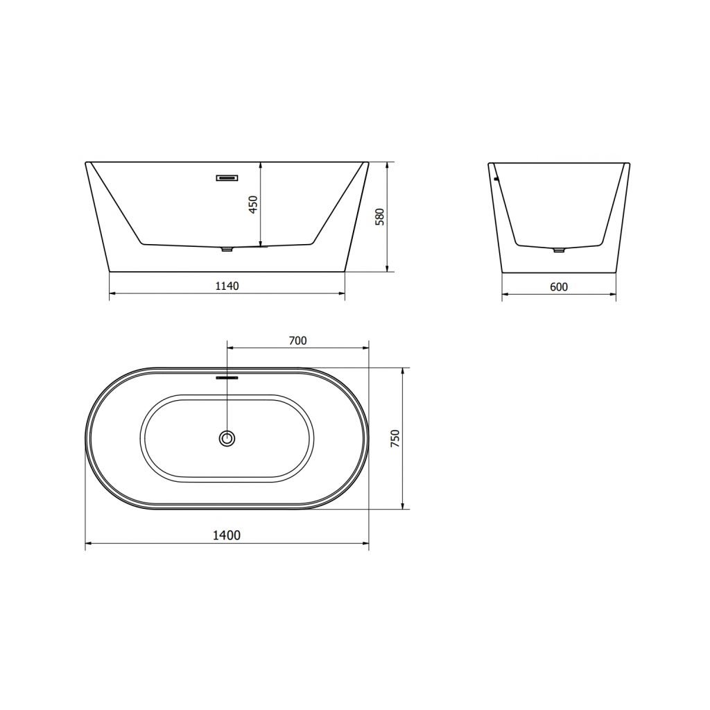 Mexen Luna, voľne stojaca vaňa 140 x 75 cm, biela, grafitový prepad, 52031407500-95