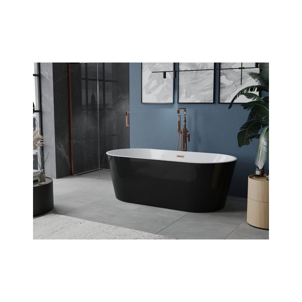 Mexen Luna, voľne stojaca vaňa 140 x 75 cm, biela/čierna, medený matný prepad, 52031407575-65