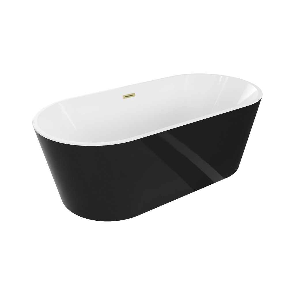 Mexen Luna, voľne stojaca vaňa 150 x 75 cm, biela-čierna, zlatý matný prepad, 52031507575-55