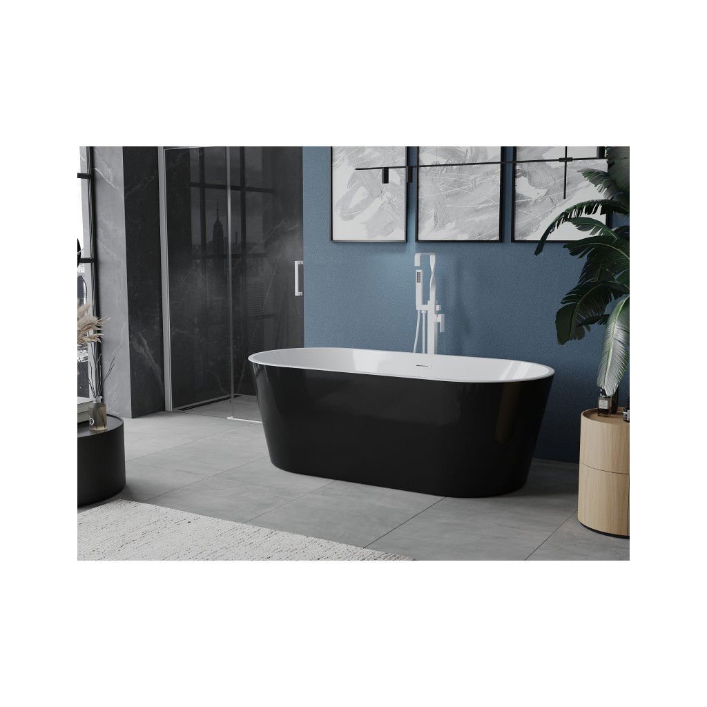 Mexen Luna, voľne stojaca vaňa 160 x 75 cm, biela-čierna, biely prepad, 52031607575-20