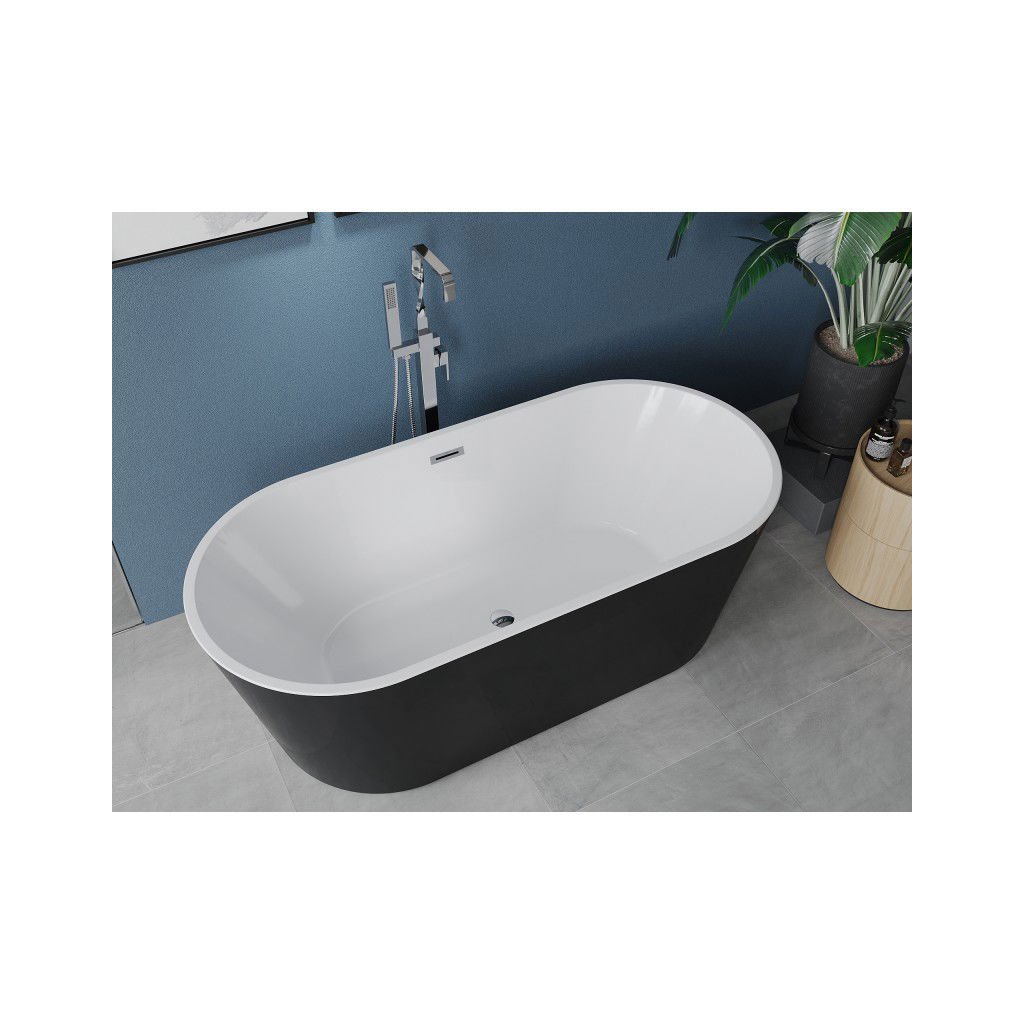 Mexen Luna, voľne stojaca vaňa 160 x 75 cm, biela-čierna, chrómový prepad, 52031607575-01