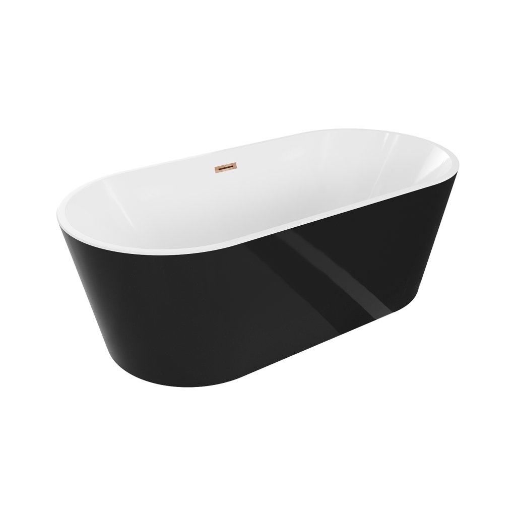 Mexen Luna, voľne stojaca vaňa 160 x 75 cm, biela-čierna, ružové zlato prepad, 52031607575-60