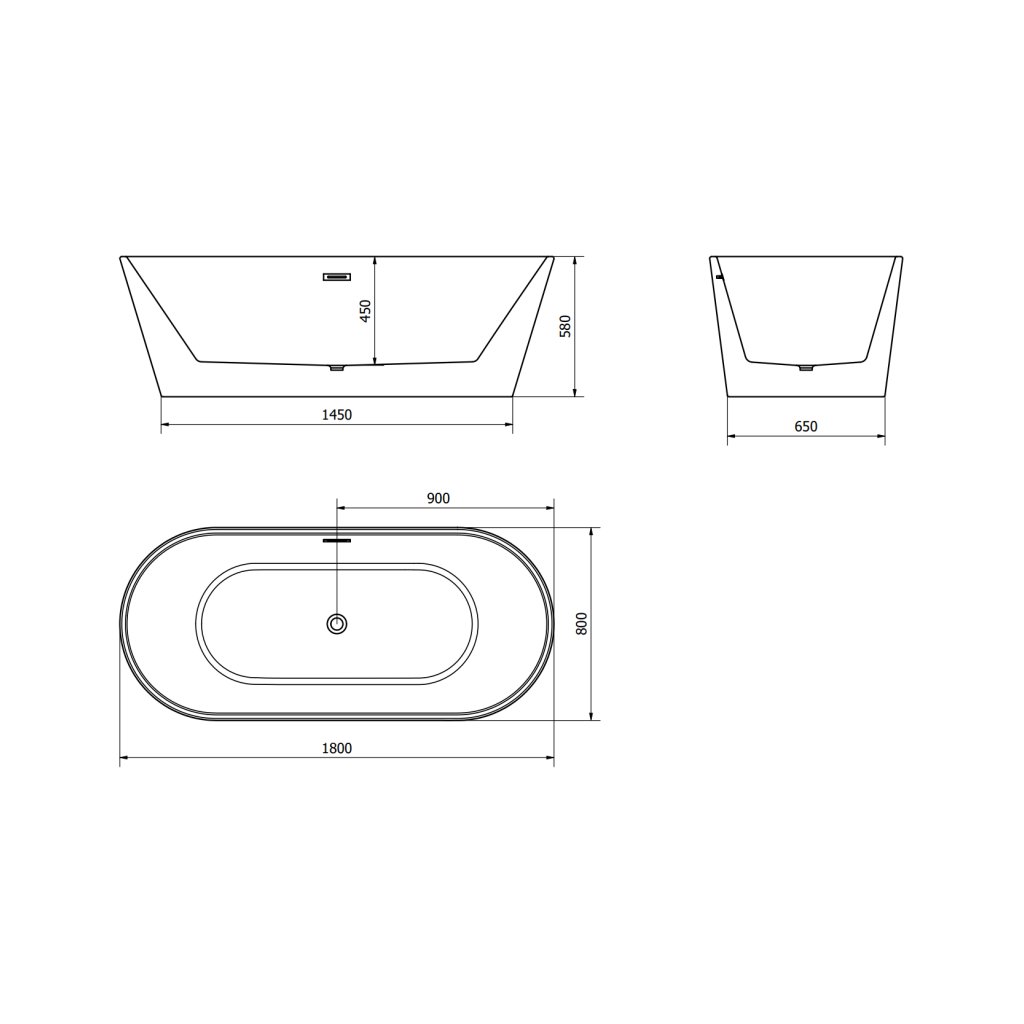 Mexen Luna, voľne stojaca vaňa 180 x 80 cm, biela, grafitový prepad, 52031808000-66