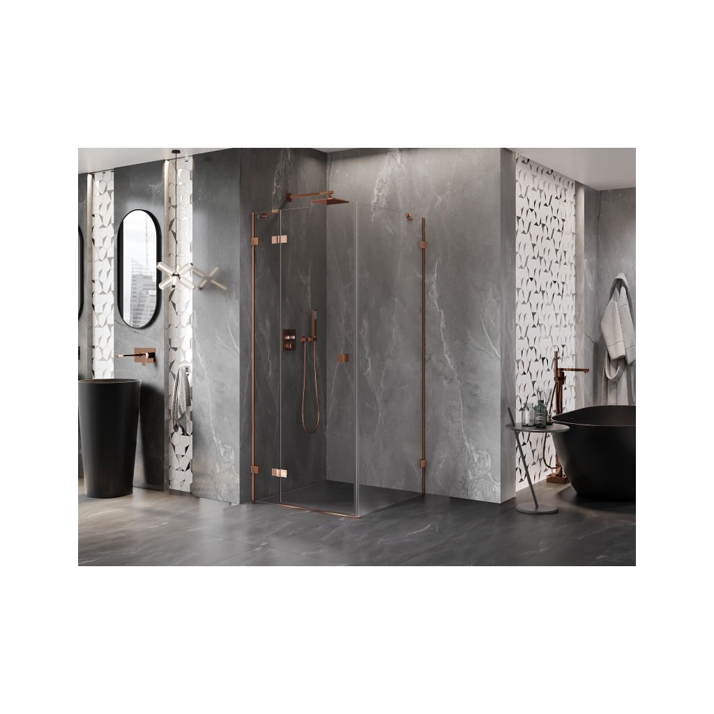 Mexen Lunar, 1-krídlový sprchový kút, ľavý, 70 x 70 cm, 8mm číre sklo, ružové zlato profil, 834-070-070-60-00-L