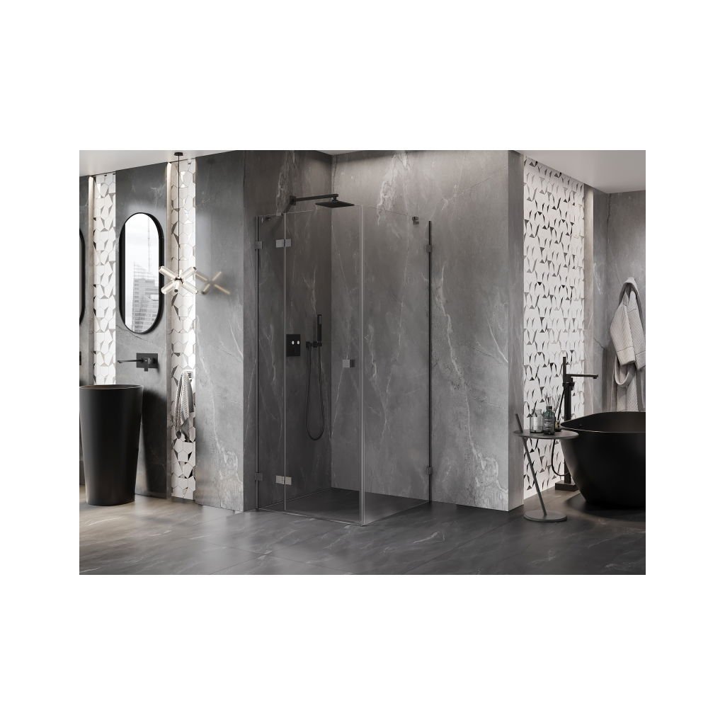 Mexen Lunar, 1-krídlový sprchový kút, ľavý, 80 x 80 cm, 8mm číre sklo, grafitový profil, 834-080-080-66-00-L