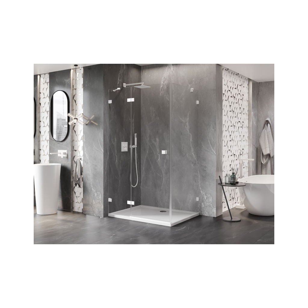 Mexen Lunar, 1-krídlový sprchový kút, ľavý, 85 x 80 cm, 8mm číre sklo, biely profil, 834-085-080-20-00-L