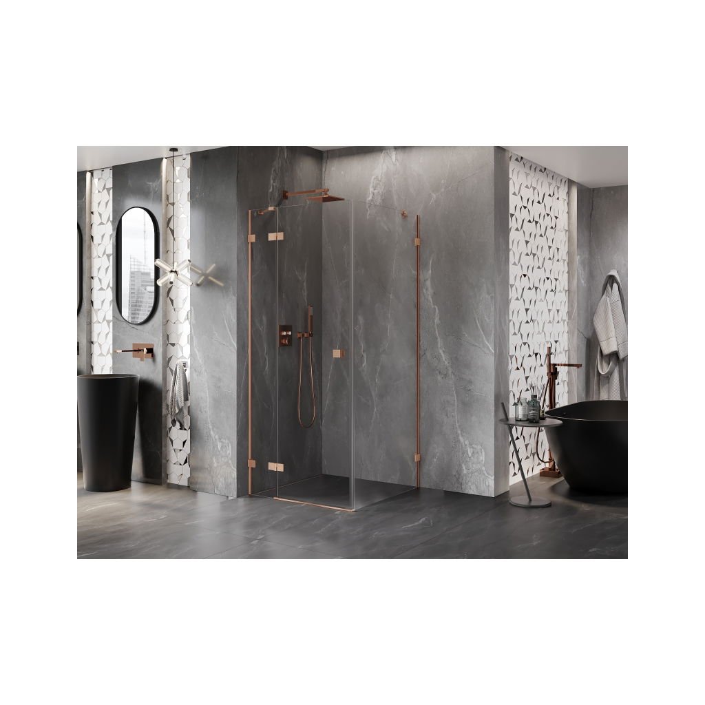 Mexen Lunar, 1-krídlový sprchový kút, ľavý, 90 x 90 cm, 8mm číre sklo, medený profil, 834-090-090-65-00-L