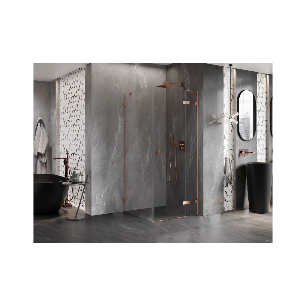 Mexen Lunar, 1-krídlový sprchový kút, pravý, 100 x 100 cm, 8mm číre sklo, ružové zlato profil, 834-100-100-60-00-P