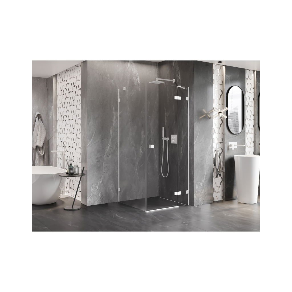 Mexen Lunar, 1-krídlový sprchový kút, pravý, 70 x 70 cm, 8mm číre sklo, biely profil, 834-070-070-20-00-P