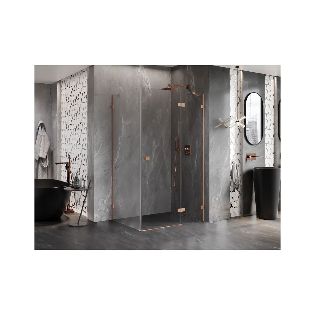 Mexen Lunar, 1-krídlový sprchový kút, pravý, 75 x 70 cm, 8mm číre sklo, medený profil, 834-075-070-65-00-P