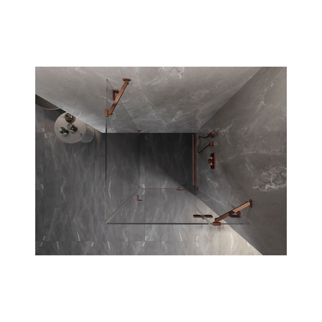 Mexen Lunar, 1-krídlový sprchový kút, pravý, 90 x 90 cm, 8mm číre sklo, ružové zlato profil, 834-090-090-60-00-P
