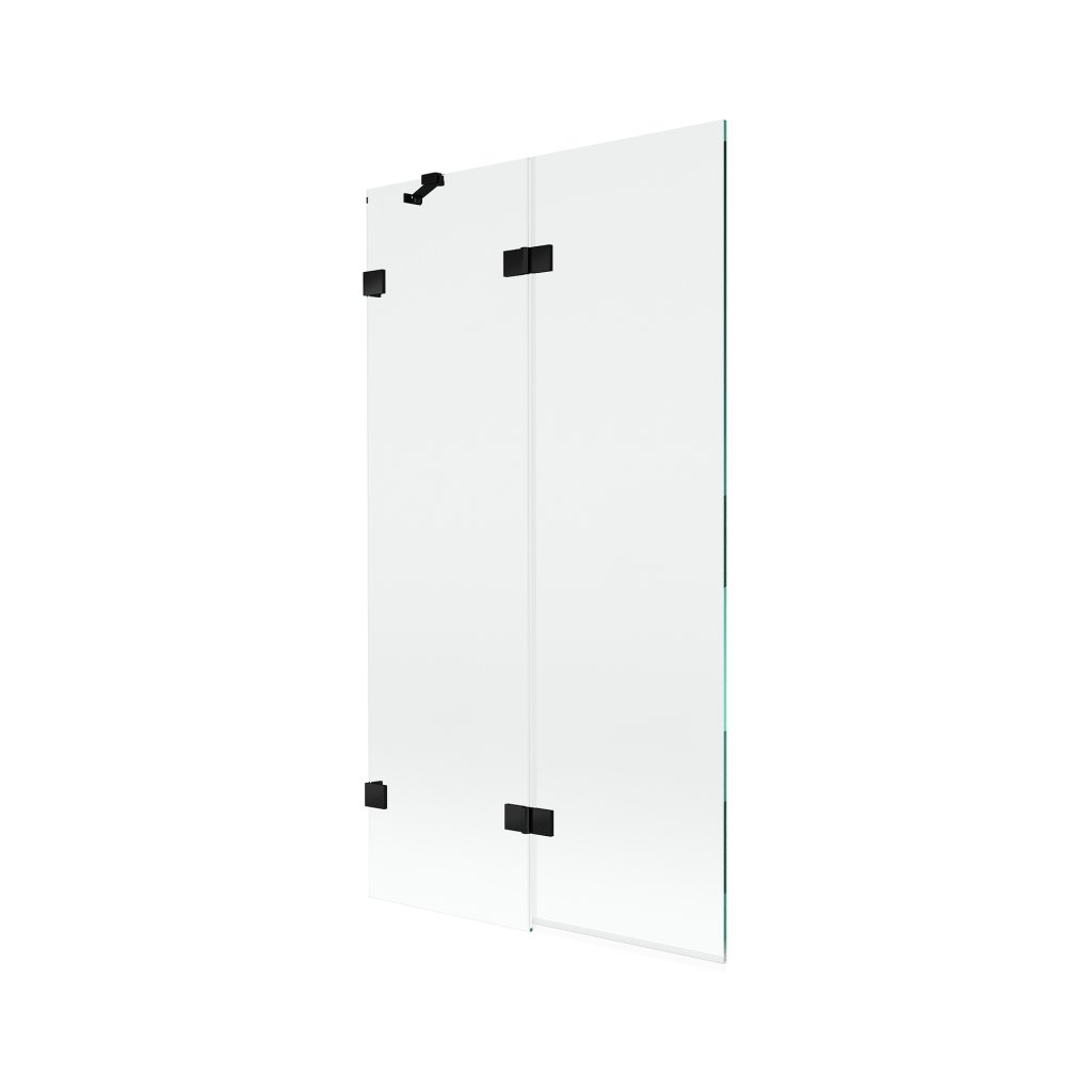 Mexen Lunar, 2-krídlová vaňová zástena ľavá 100 x 150 cm, číre sklo, čierna matná, 897-100-100-70-00-L