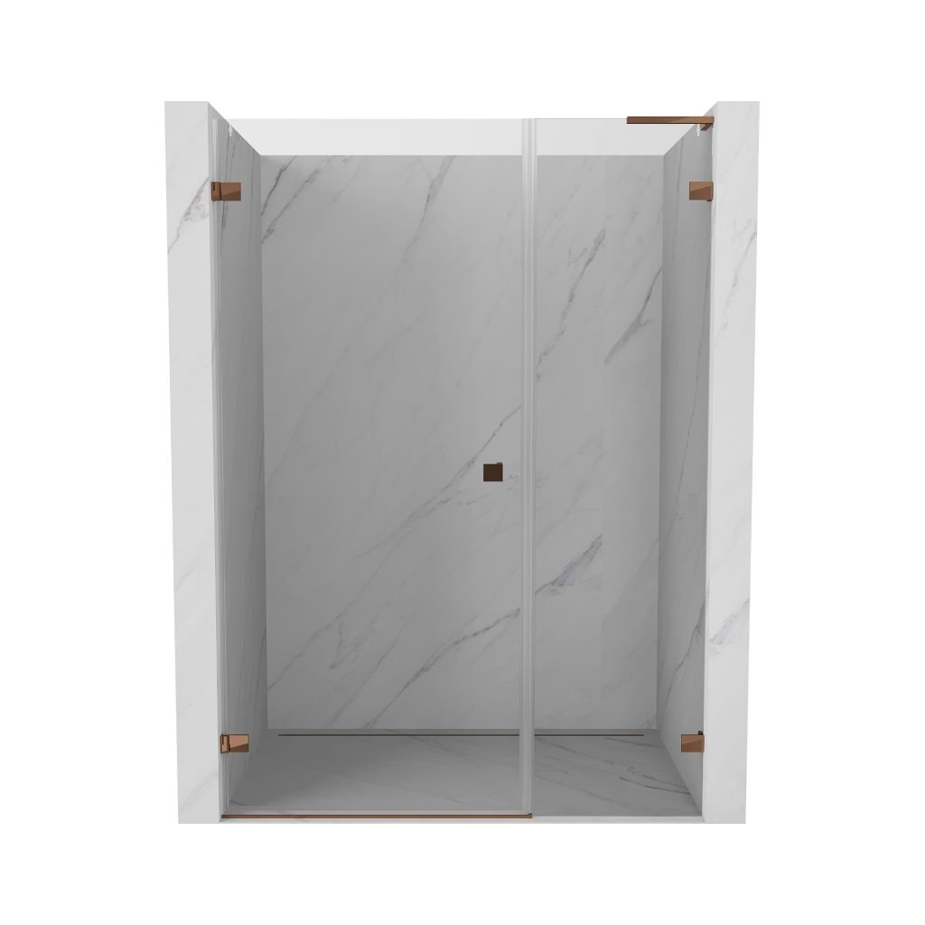 Mexen Lunar-B, L výklopné ľavé sprchové dvere 140 cm, 8mm číre sklo, ružové zlato profil, 832SL-140-050-60-00-L
