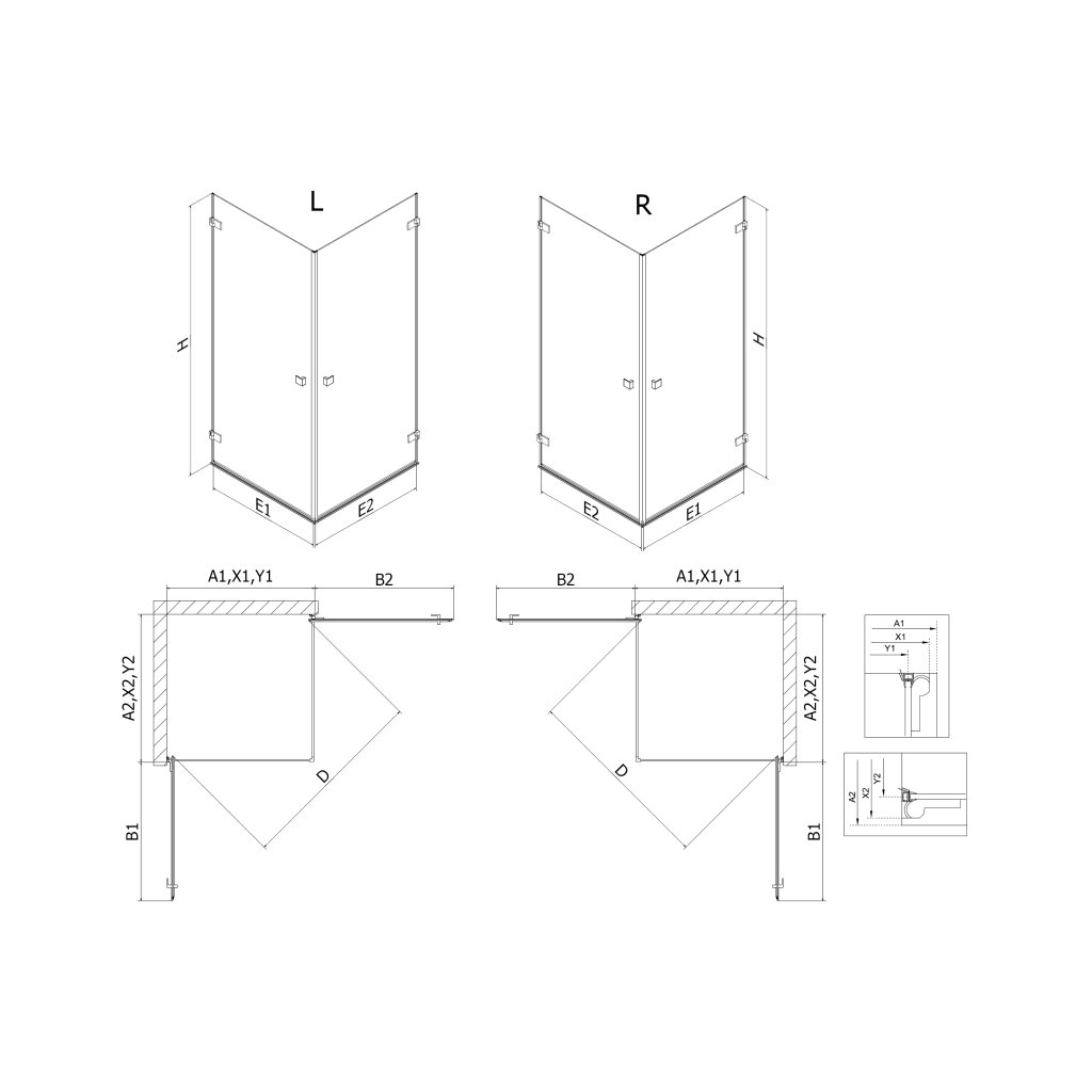 Mexen Lunar-B Duo sklápací sprchový kút 85 x 85 cm, číre sklo, brúsený grafit, 832-085L-085P-66-00