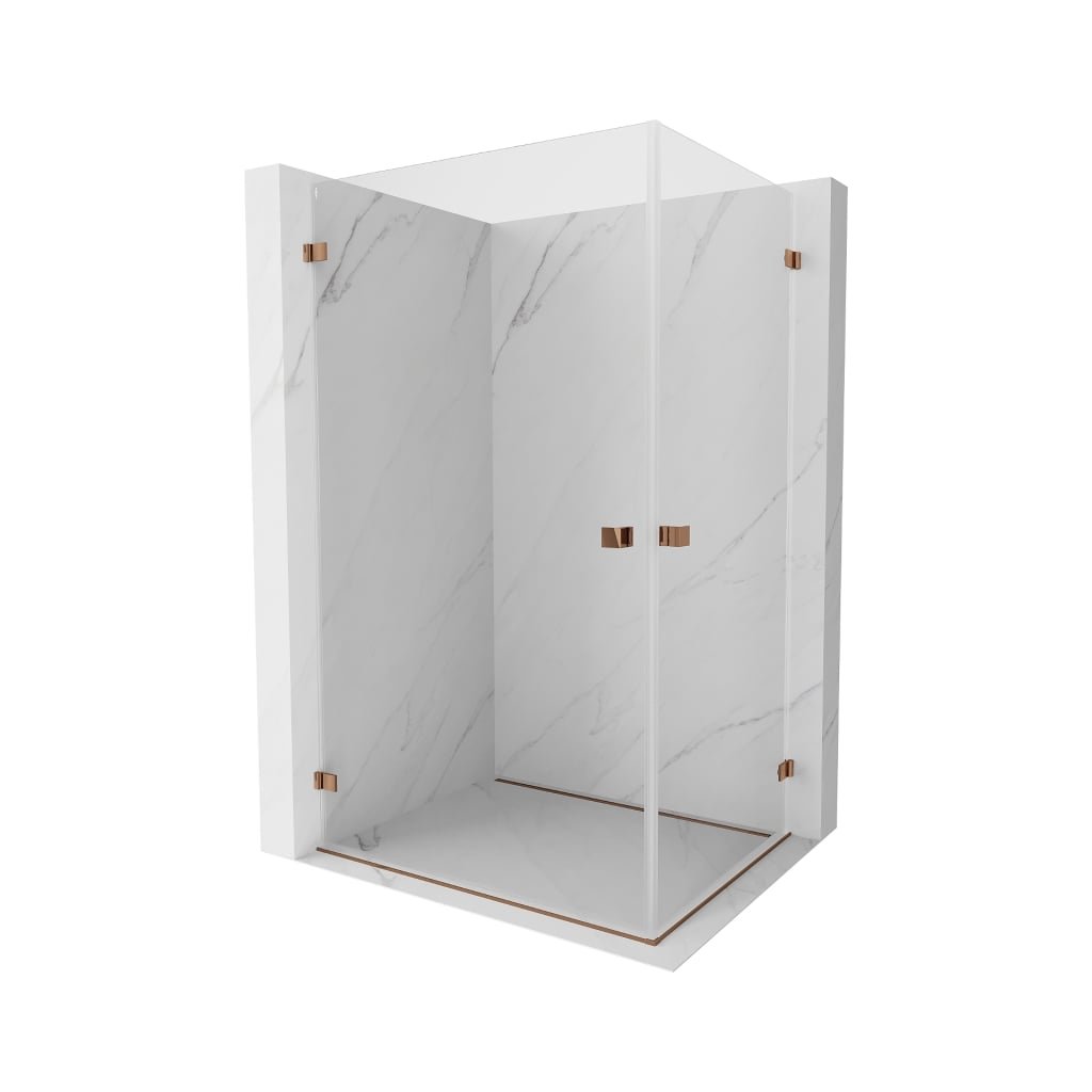 Mexen Lunar-B Duo výklopný sprchový kút 100 x 75 cm, číre sklo, ružové zlato, 832-100L-075P-60-00