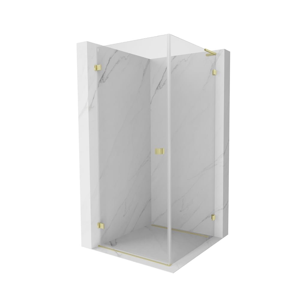 Mexen Lunar-B L sklápací sprchový kút ľavý 100 x 100 cm, číre sklo, zlatá matná, 832L-100-100-55-00-L