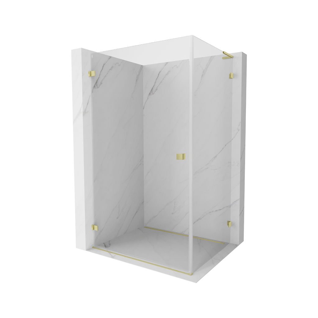 Mexen Lunar-B L sklápací sprchový kút ľavý 100 x 80 cm, číre sklo, zlatá matná, 832L-100-080-55-00-L