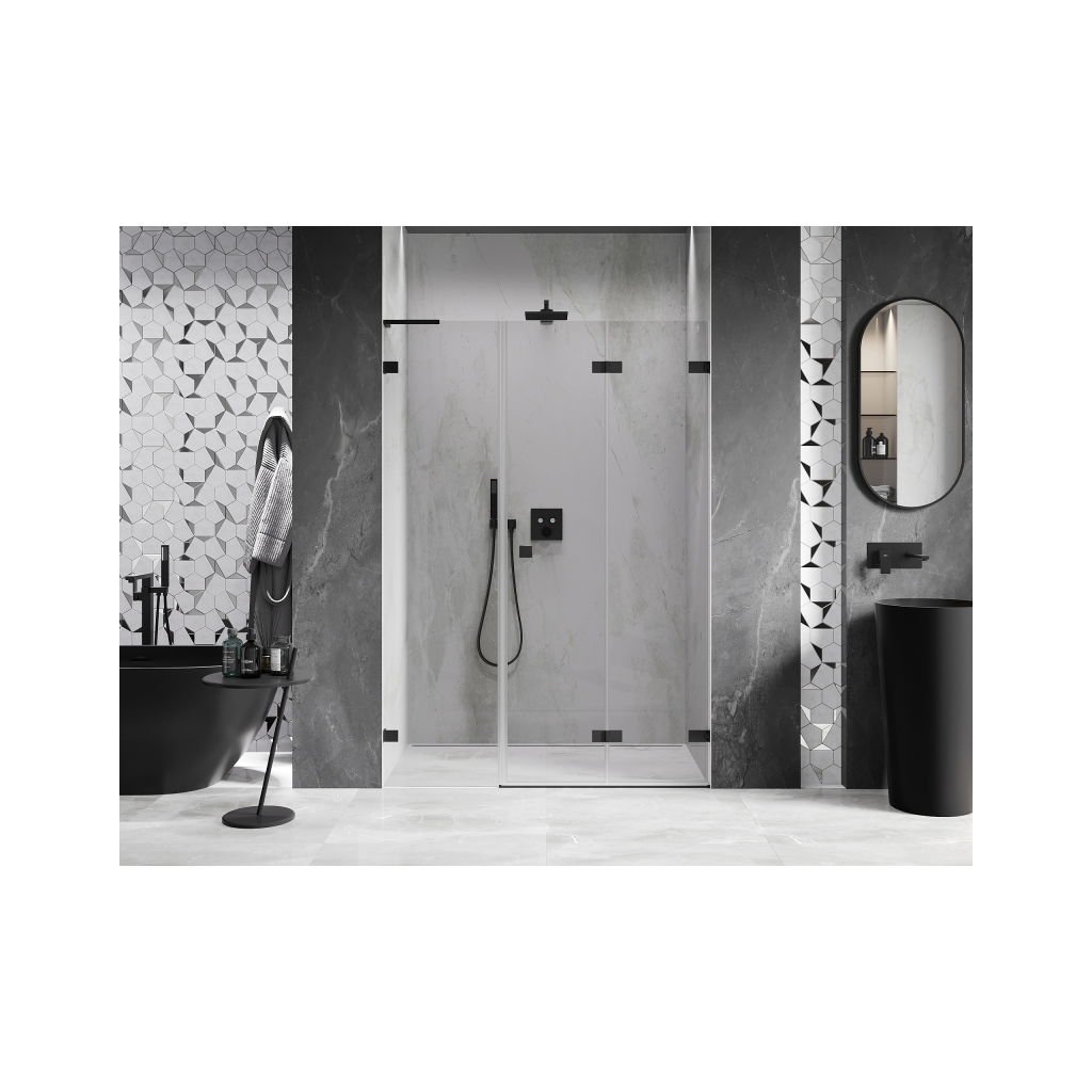 V konfigurácii viacerých rozmerov ponúka stabilnú konštrukciu a skladacie dvere. Tvrdené sklo s povrchom EasyClean zjednodušuje údržbu a profil v odtieni Čierna zapadne do moderných kúpeľní.