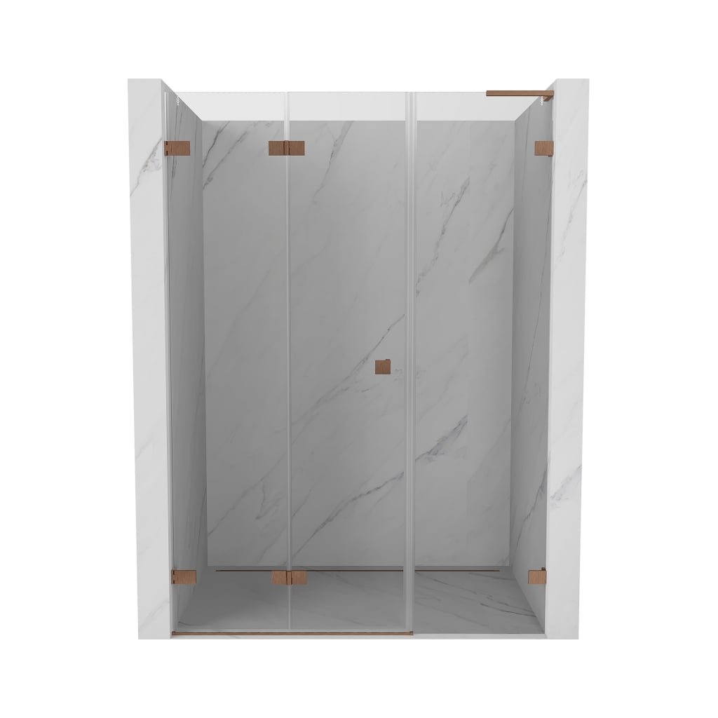 Mexen Lunar-F, L skladacie ľavé sprchové dvere 130 cm, 8mm číre sklo, medený matný profil, 836SL-130-050-65-00-L
