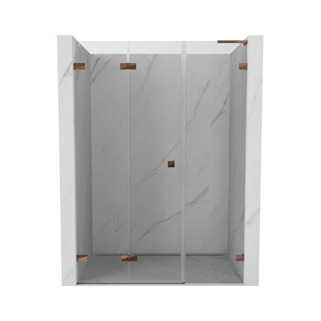 Mexen Lunar-F, L skladacie ľavé sprchové dvere 150 cm, 8mm číre sklo, ružové zlato profil, 836SL-150-050-60-00-L