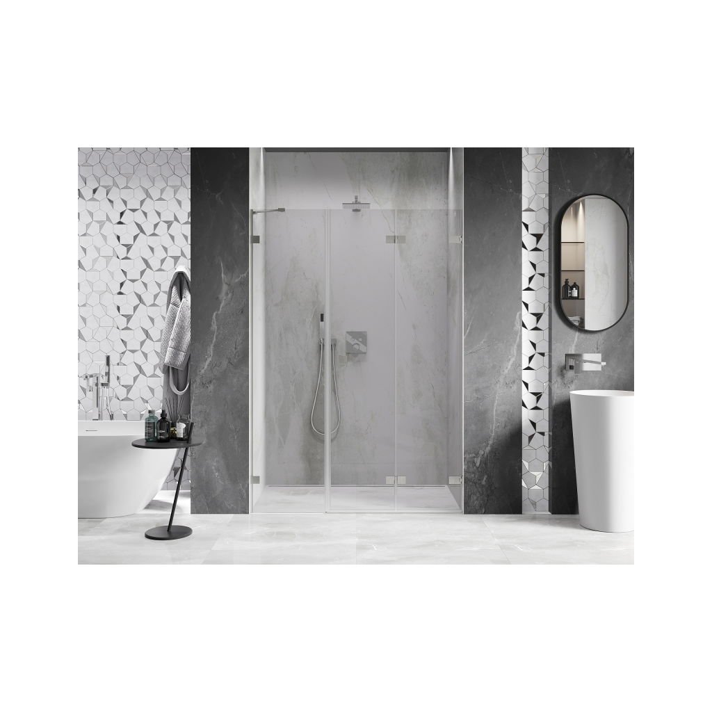 V konfigurácii viacerých rozmerov ponúka stabilnú konštrukciu a skladacie dvere. Tvrdené sklo s povrchom EasyClean zjednodušuje údržbu a profil v odtieni Brúsený nikel zapadne do moderných kúpeľní.