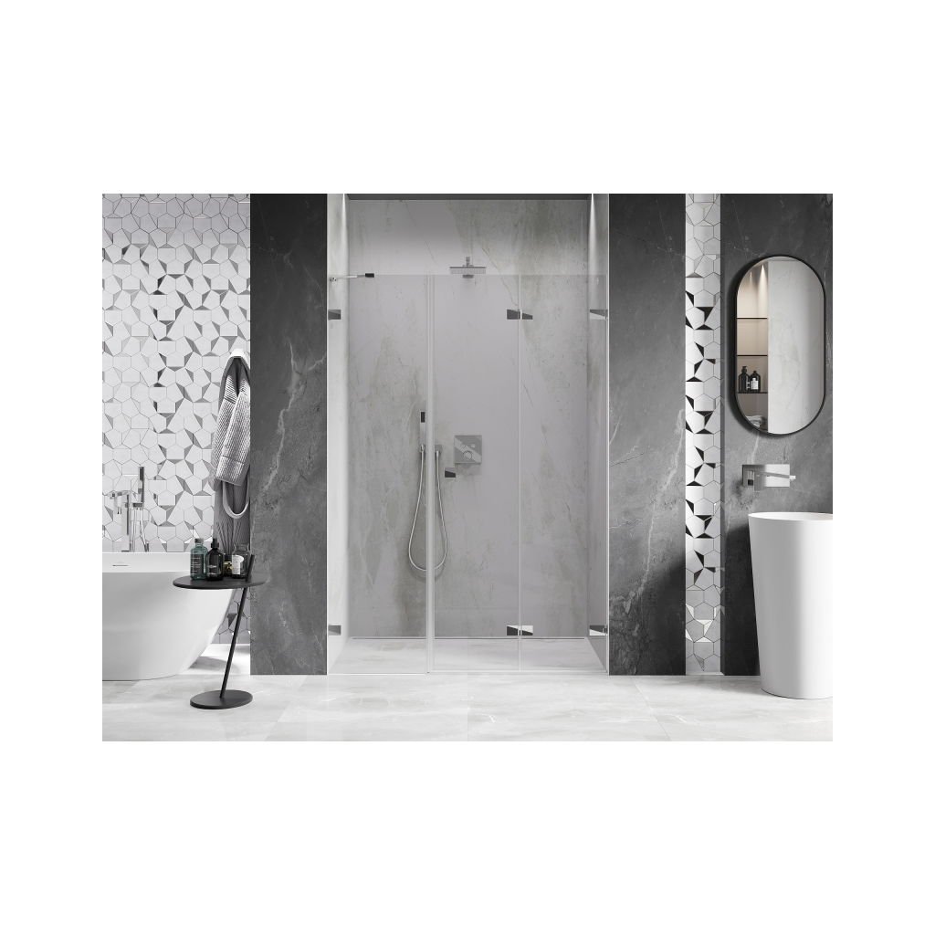 V konfigurácii viacerých rozmerov ponúka stabilnú konštrukciu a skladacie dvere. Tvrdené sklo s povrchom EasyClean zjednodušuje údržbu a profil v odtieni Chrómová zapadne do moderných kúpeľní.