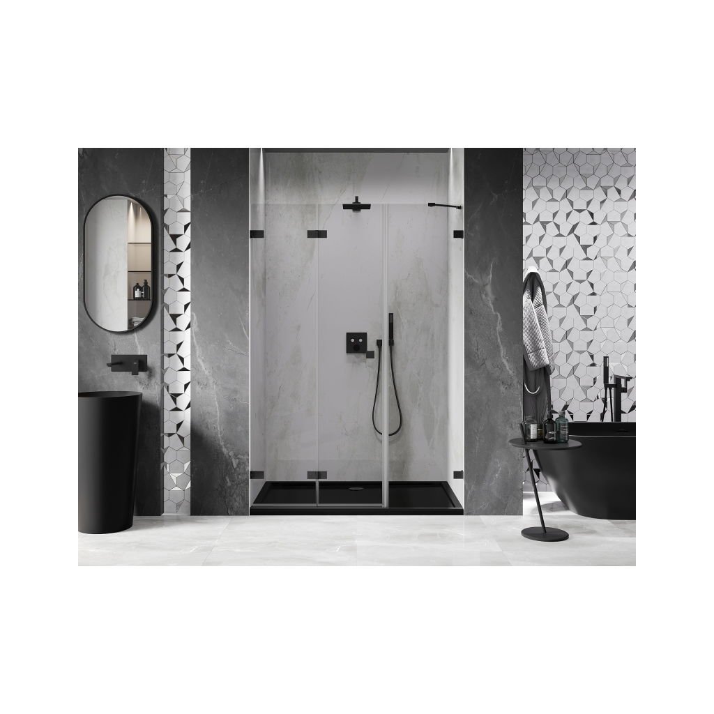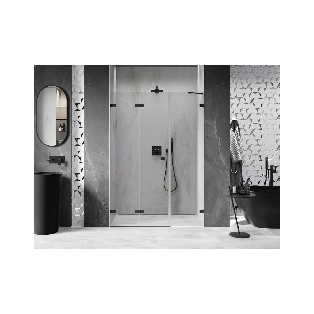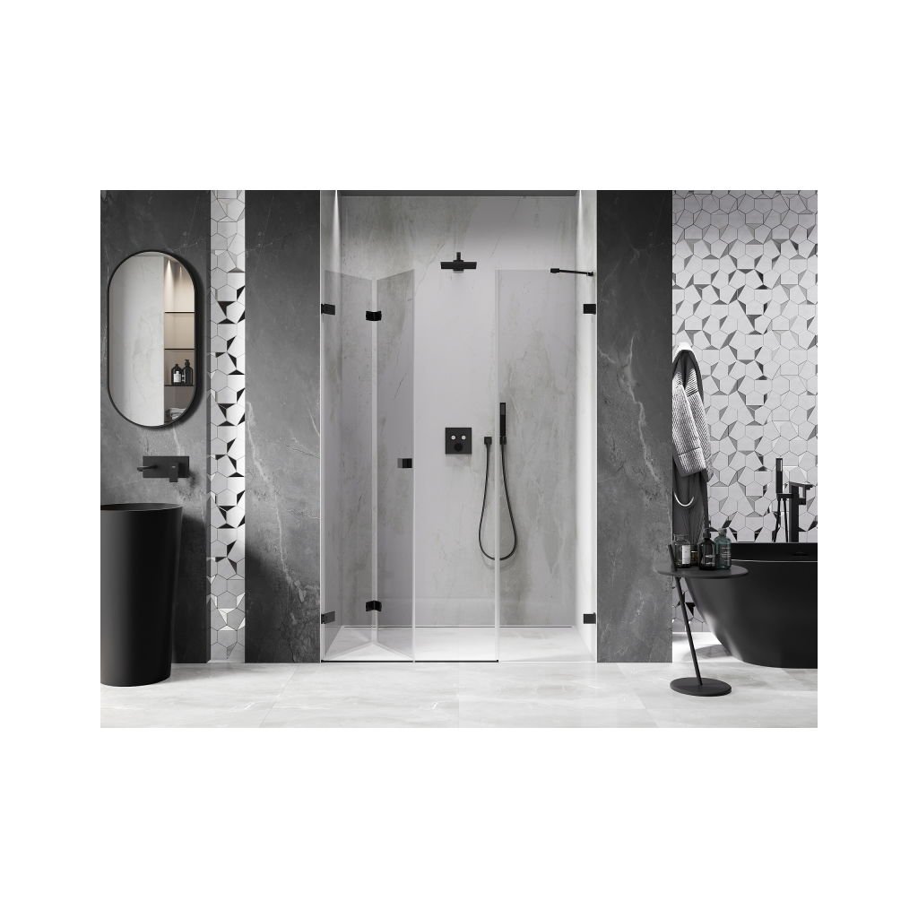 V konfigurácii viacerých rozmerov ponúka stabilnú konštrukciu a skladacie dvere. Tvrdené sklo s povrchom EasyClean zjednodušuje údržbu a profil v odtieni Čierna zapadne do moderných kúpeľní.