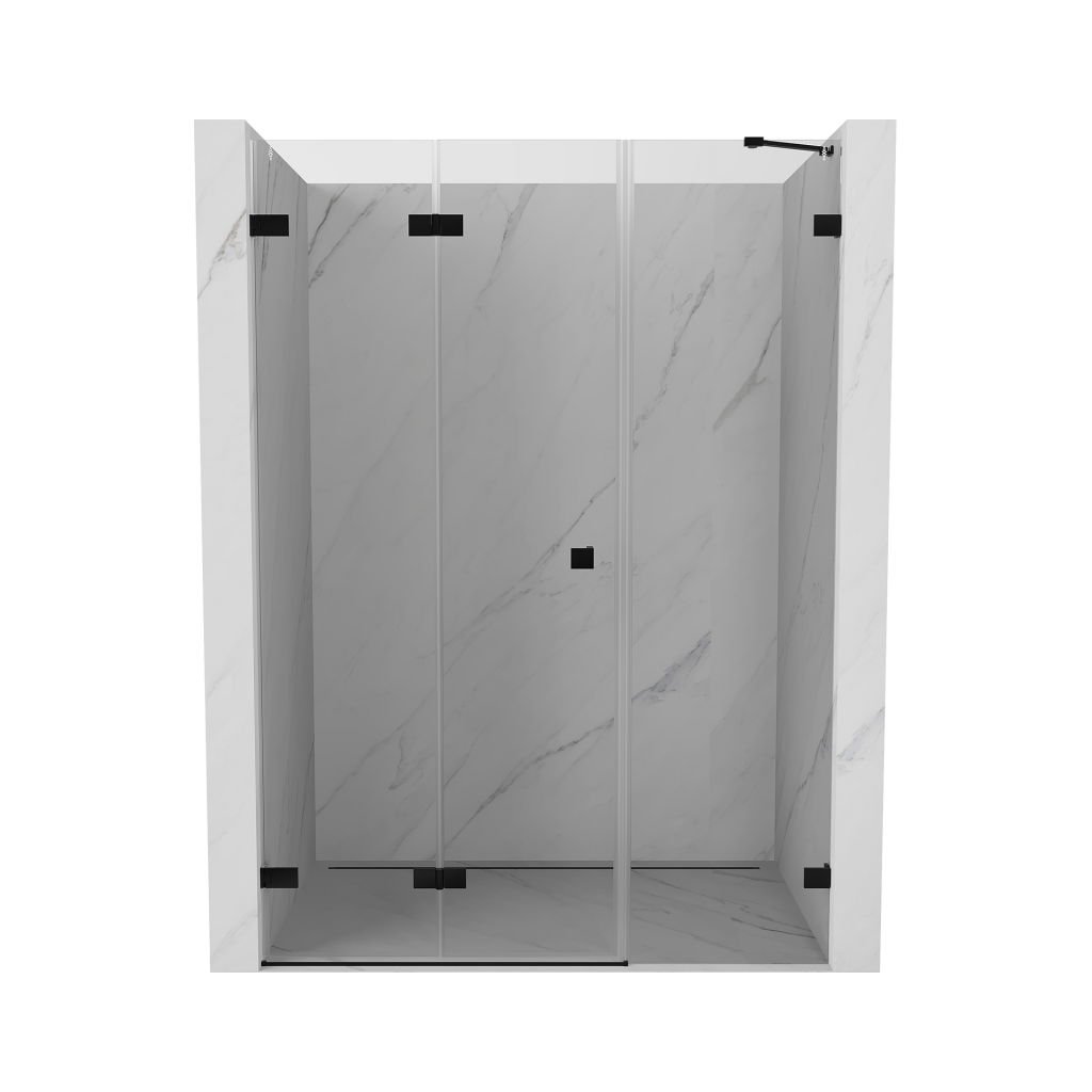 Mexen Lunar-F, skladacie ľavé sprchové dvere 120 cm, 8mm číre sklo, čierny matný profil, 836S-120-050-70-00-L