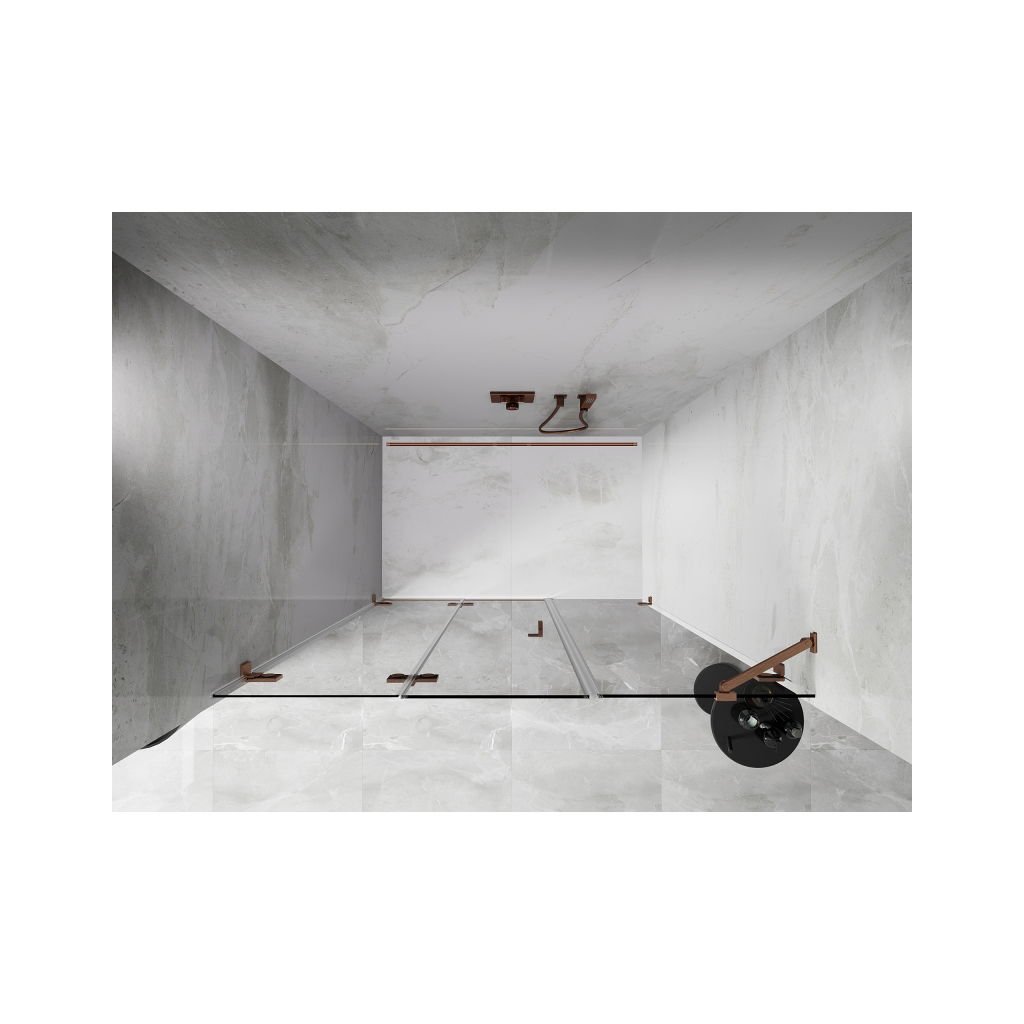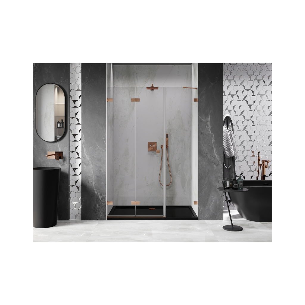 V konfigurácii viacerých rozmerov ponúka stabilnú konštrukciu a skladacie dvere. Tvrdené sklo s povrchom EasyClean zjednodušuje údržbu a profil v odtieni Brúsená meď zapadne do moderných kúpeľní.