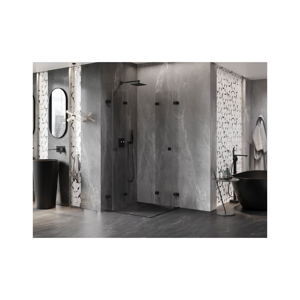 Mexen Lunar-F Duo, skladací sprchový kút 95 x 95 cm, 6mm číre sklo, čierny profil, 836-095L-095P-70-00