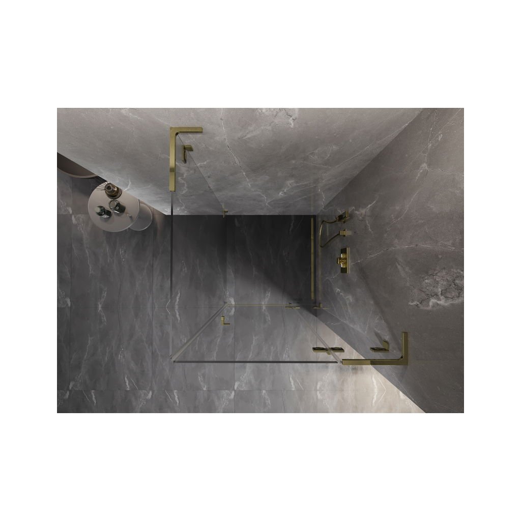 Mexen Lunar L, 1-krídlový sprchový kút, pravý, 90 x 90 cm, 8mm číre sklo, zlatý lesklý profil, 834L-090-090-50-00-P