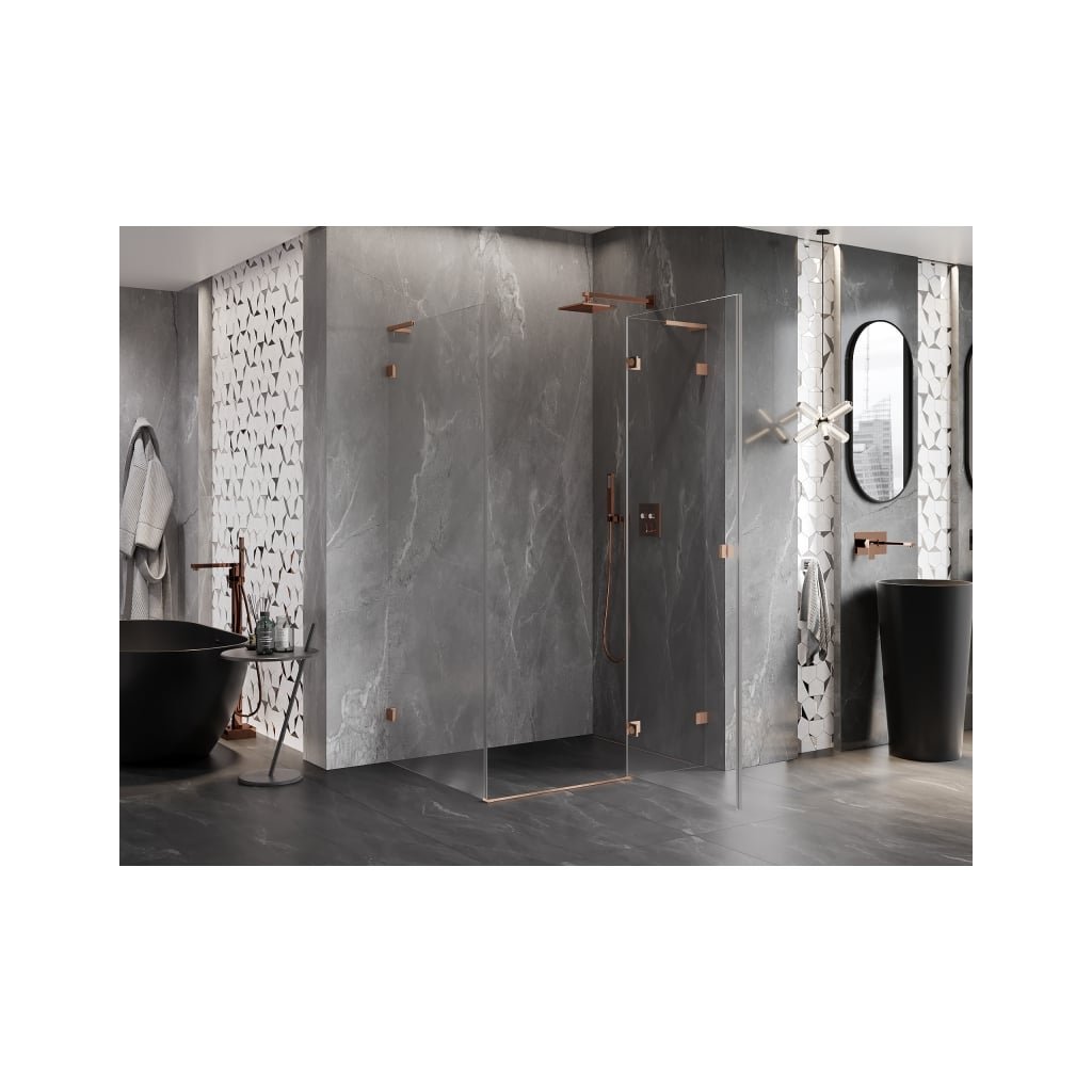 V konfigurácii 70 × 80 cm ponúka stabilnú konštrukciu a výklopné (krídlové) dvere. Tvrdené sklo s povrchom EasyClean zjednodušuje údržbu a profil v odtieni Brúsená meď zapadne do moderných kúpeľní.