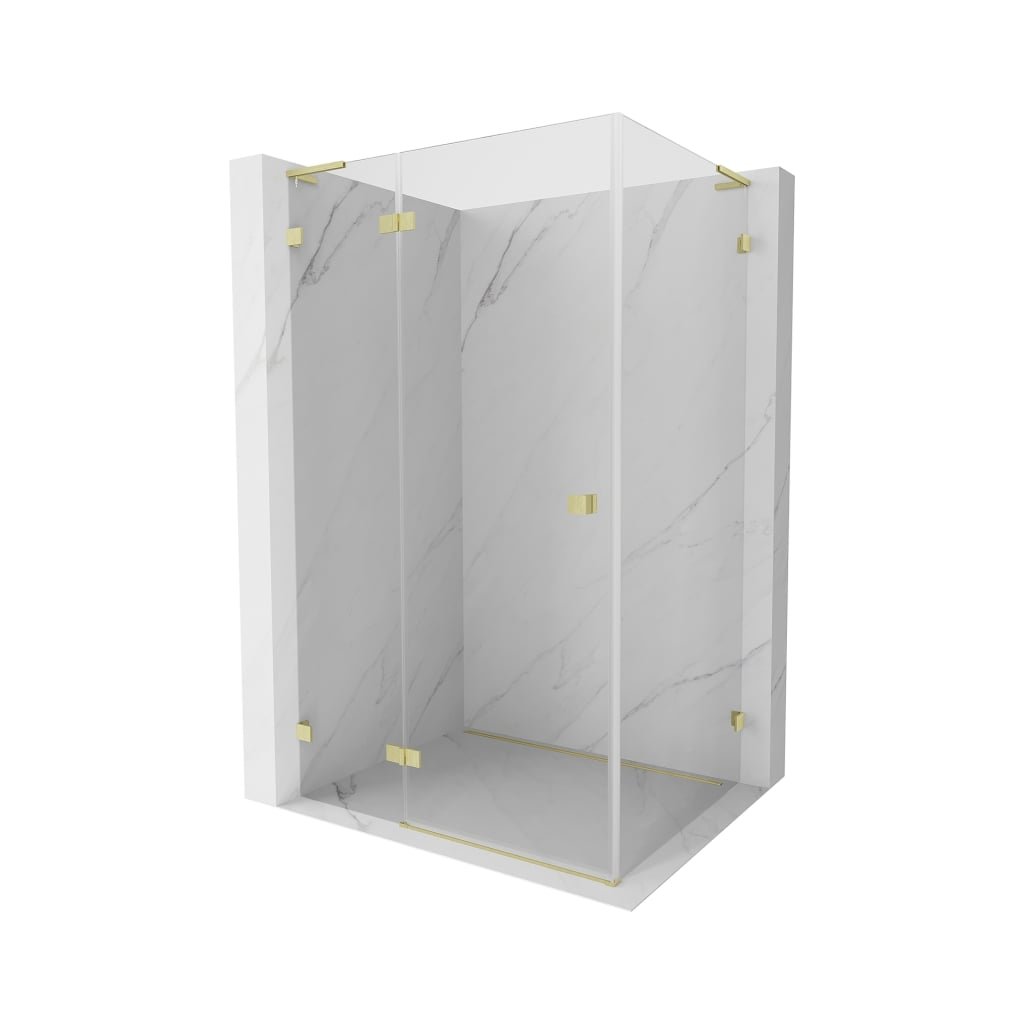 Mexen Lunar L, sklápací sprchový kút ľavý 75 x 90 cm, 8mm číre sklo, zlatý matný profil, 834L-075-090-55-00-L