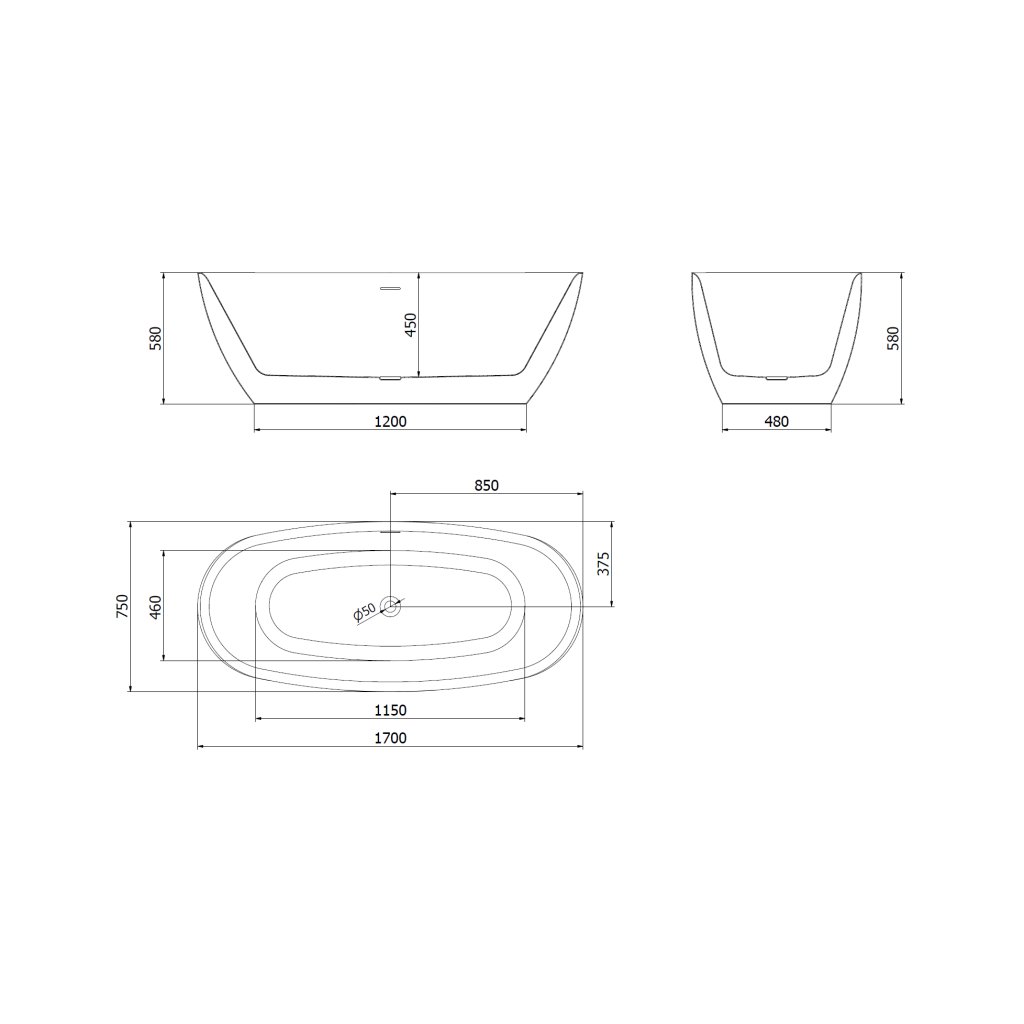 Mexen Luvo Slim, voľne stojaca vaňa 170 × 75 cm, biela-čierna, chrómový prepad, 52801707575-01