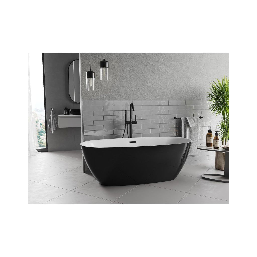 Mexen Luvo Slim, voľne stojaca vaňa 170 × 75 cm, biela-čierna, čierny prepad, 52801707575-70