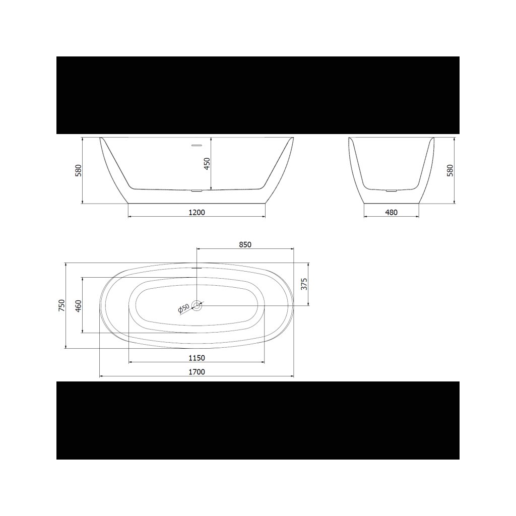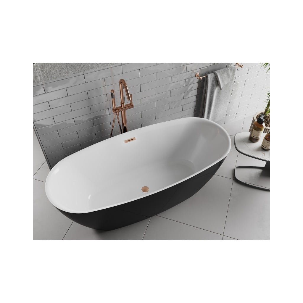 Mexen Luvo Slim, voľne stojaca vaňa 170 × 75 cm, biela-čierna, medený prepad, 52801707575-65